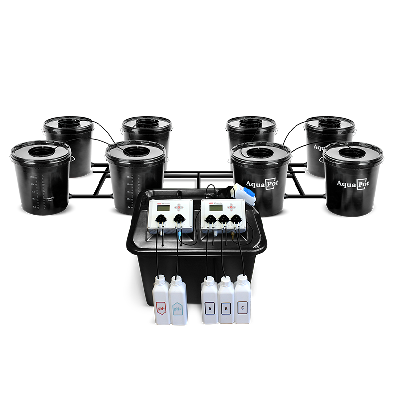 AquaPot E-mode 8 – это автономная гидропонная установка, которая сочетает в себе принципы действия систем водной гидропоники Deep Water Culture и системы капельного полива. AquaPot E-mode 8 подходит для выращивания растений в домашних условиях, в теплицах, оранжереях и рассчитан на 8 крупных растения. Каждая из 8-х емкостей вмещает более 25 литров раствора. Для автоматизации процессов приготовления и поддержания питательного раствора растворный бак оснащен слотами для установки модулей E-mode: