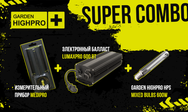 Комплектующие:ЭПРА LUMAXPRO 600 ВтGarden Highpro HPS MIXED BULBS 600WИзмерительный прибор MEDIPRO