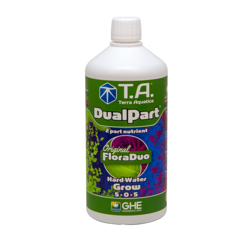 Чтобы обеспечить наилучшие результаты в вашем регионе, DualPart Grow доступен в вариантах с жесткой и мягкой водой: (более 70 мг/л кальция, используйте DualPart Grow HW для жесткой воды. Для воды с меньшим количеством кальция или при использовании обратного осмоса, используйте FloraDuo® Grow SW для мягкой воды.