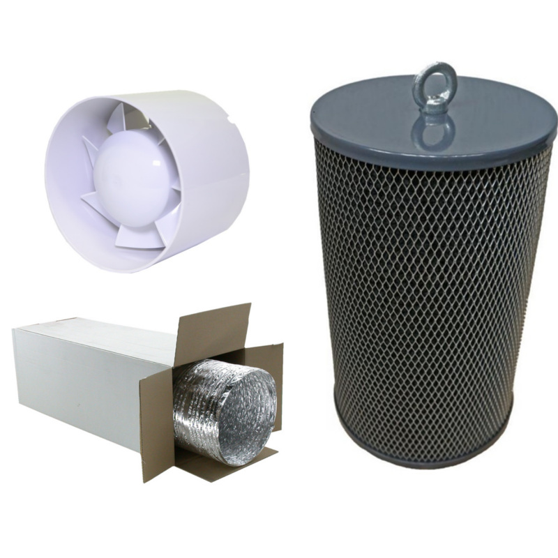 Комплект вентиляции с канальником 300м3/ч и угольным фильтром 350м3/ч для очистки воздуха в гроубоксе.